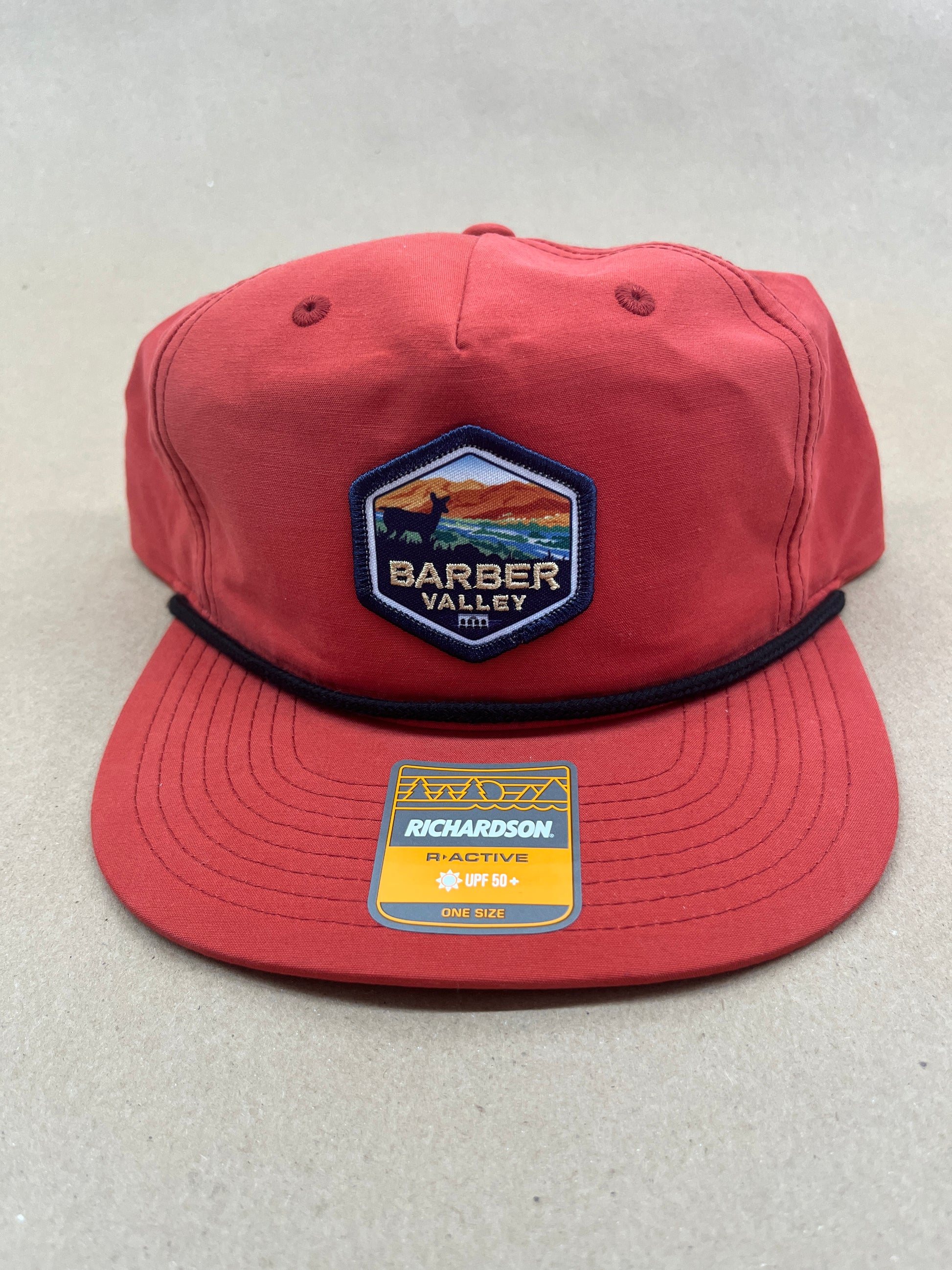It's time to rep our local Barber Valley. These patch hats are perfect. This is the Richardson Umpqua style rope hat (85% cotton 15% Nylon) with the Barber Valley Neighborhood logo patch. Snap in the back, OSFM. The color is more of a dark orange red.