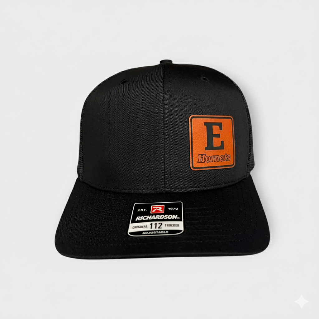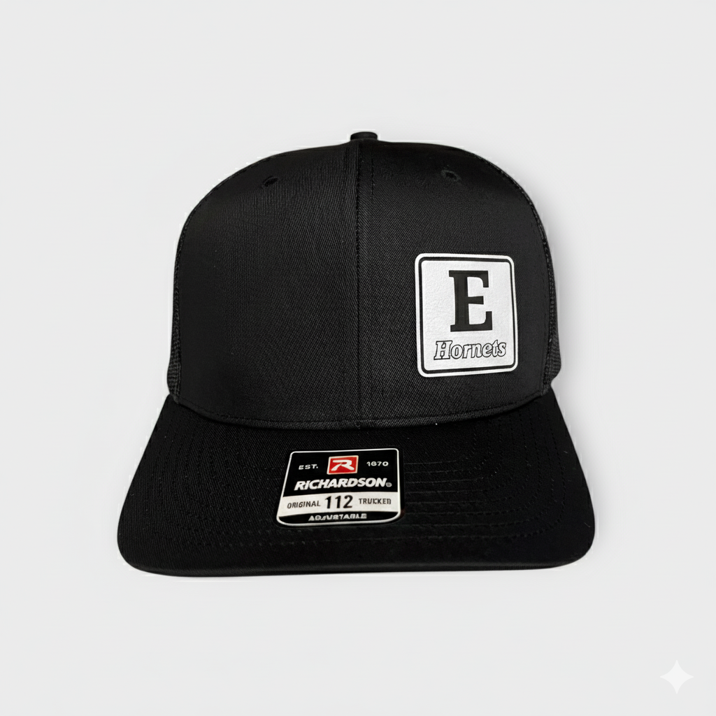 Rock the hive with this classic Richardson 112 trucker hat, featuring a bold offset patch that screams team spirit. Choose your vibe—crisp white or vibrant orange "E Hornets" branding on a sleek black cap. Perfect for game day, casual outings, or showing your crew pride wherever you go. Structured front panels and breathable mesh back keep you comfortable all day long.