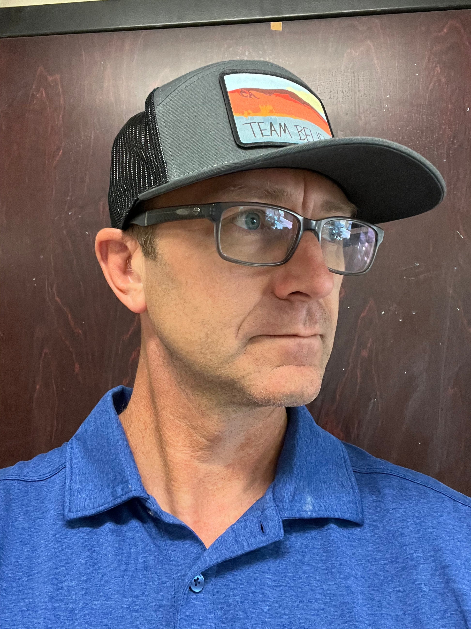 The custom “Team Believe” hat is inspired by Chris Adams and all of the cancer warriors out there.